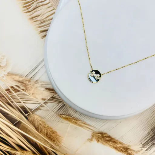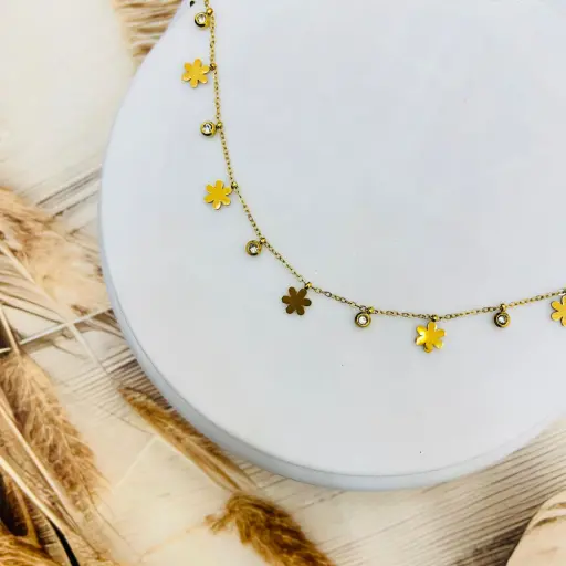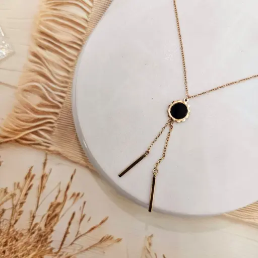 Black Flower Or Daisy-Shaped Pendant With Chain
