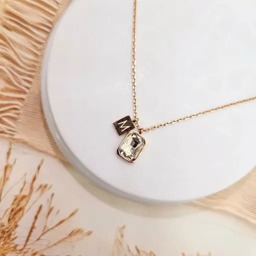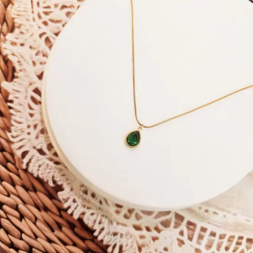 Chain Necklace Gold Green Emerald Drop Stainless Steel