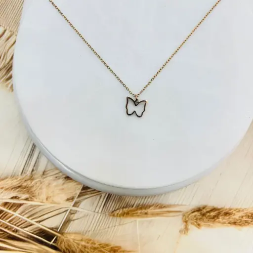 Gold-Plated Minimal Chain Butterfly Studded Drop Pendant Necklace.
